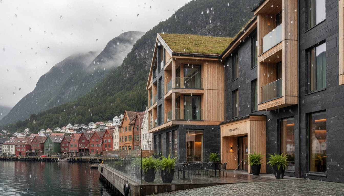 Hotel Norge by Scandic (Bergen) – Et luksuriøst byhotell med spa og basseng, plassert midt i Bergens livlige sentrum. Pris ca. 1 800–2 500 NOK/natt.